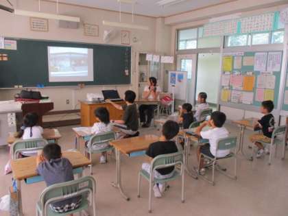 1・2年生の生活科の授業のようすです。来週行われる校外学習をテ−マに学習していました。子どもたちは、映像を見ながら、駅の利用の仕方、切符の買い方、石筵牧場での活動などについて、みんなで確かめました。