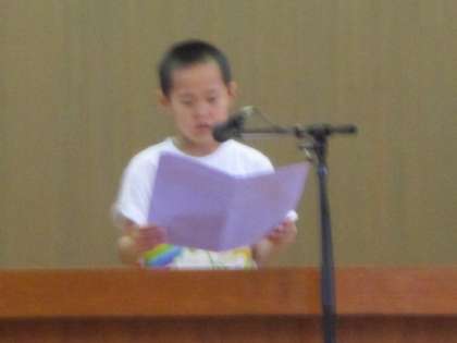本日、午前9時より、御舘小学校下枝分校体育館において、平成29年度中田地区敬老会が開催され、2年生が作文「大すきなおじいちゃん、おばあちゃんへ」の発表を行いました。堂々とした態度で立派に発表することができました。この機会におじいちゃんやおばちゃんに日頃の感謝の気持ちを言葉で伝えましょう。