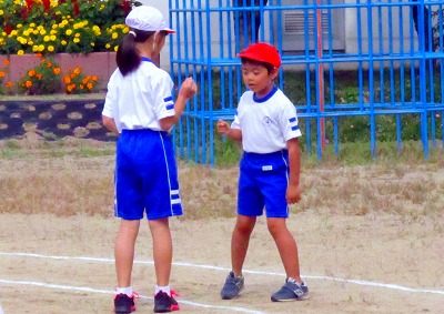 今回の海老根っ子タイムは「ジャンケンリレー」! 1年生から6年生までが、応援し合い、楽しい時間を過ごしました。