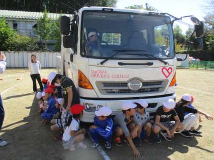 その後、運転席からの死角を体験しました。そして、1・2年生は横断歩道の渡り方を教えてもらい、一人ずつ練習しました。
