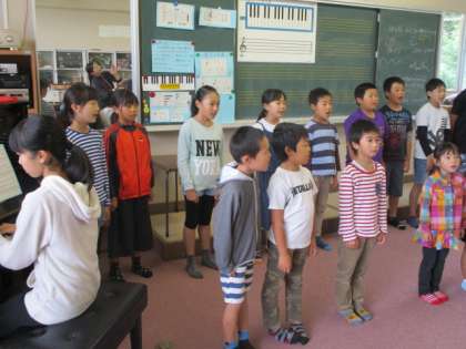 今日は、朝の時間に全校生で合唱の練習をしました。海老根フェスティバルで発表する予定ですので、お楽しみに。