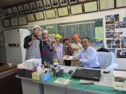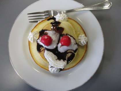 スポーツクラブのみんなは、校庭でドッジボールをしていました。家庭クラブのみんなは、ホットケーキ作りをしていました。私の分も作ってくれました。「私の顔」だそうです。おいしくいただきました。