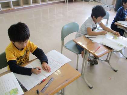 2年生の国語の授業のようすです。「お手紙」の学習をしていました。子どもたちは、登場人物の行動が書かれている文を、ひとつひとつ見つけていました。