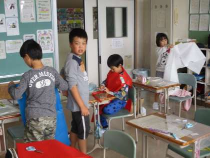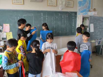 3・4年生の総合的な学習のようすです。海老根フェスティバルに向けて、衣装作りをしていました。準備が着々と進んでいるようです。発表が楽しみですね。