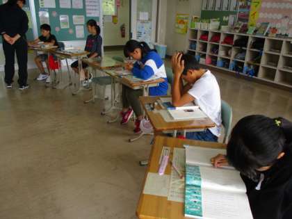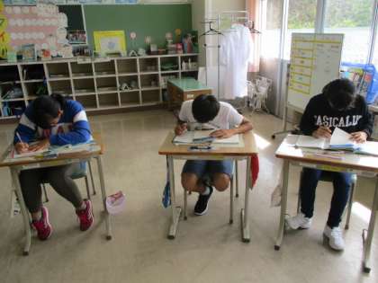 6年生の国語の授業のようすです。「やまなし」の学習をしていました。子どもたちは、内容の学習をする前に、読んだ印象をノートに書いていました。落ち着いた雰囲気で学習する姿は、さすが6年生です。