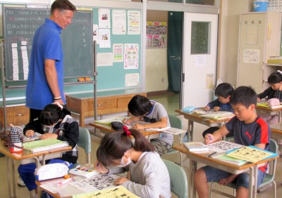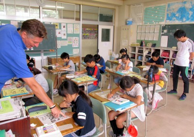 3・4年生は、ハロウィンの絵の中から、アルファベットを探す授業。絵が複雑で見つけ出すのが難しく、アルファベットの形をよく知っていないと解決できません。でも、しっかり見つけ出すことができ、びっくり! しかも、アルファベットごとに色(Collar)の指定もあって厳しい条件だったのですが、3・4年生はしっかりクリアできました!