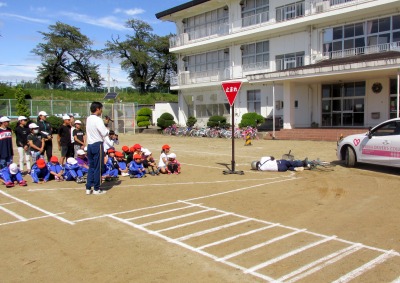 迫力のある実演に、みんなでびっくり! 子どもたちにとって、事故の恐ろしさを考える場になりました。