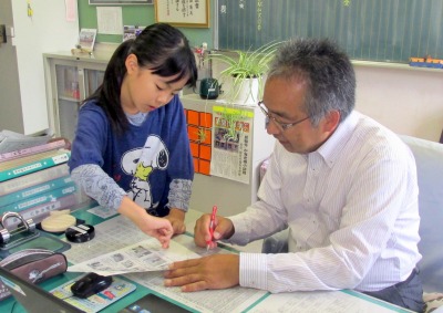 学校だよりに掲載されている「親子チャレンジ問題」は、現在、ナンバー5です。ナンバー5の親子チャレンジ問題は、今までの問題より、さらにスパイスの効いた難しい問題でした。でも、おうちの方と一緒に解決できた子どもたちがたくさんいました。笑顔いっぱいの表情で、校長先生に答えを話す子どもたち。その様子を全職員でうれしく思っています。