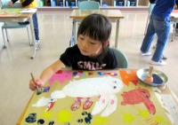1・2年生は、図画の作品作りに真剣に取り組んでいます。どれもすてきな作品ばかり! 今年度は、海老根フェスティバル会場に飾ることができないため、11月1日・2日の自由参観デーの際に、校内に展示します。どれも魅力的な作品ですのでご期待ください。