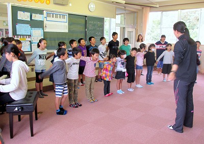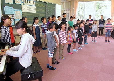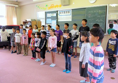 久しぶりに全校生で歌うので「忘れているのでは?」と思ったのですが、子どもたちは立派です。考えていた以上に覚えていて、しっかりと歌うことができました。