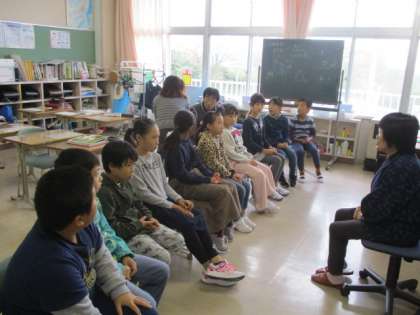 図書ボンティアの皆さんに読み聞かせをしてもらいました。子どもたちは、ボランティアの方々の声色を変えた表現に、耳を傾けていました。