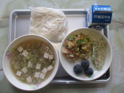 今日は、食育の日(伝承料理)こんだてです。けんちんうどん、牛乳、笹かまぼこの磯辺揚げ、白菜のおひたし、ぶどうでした。