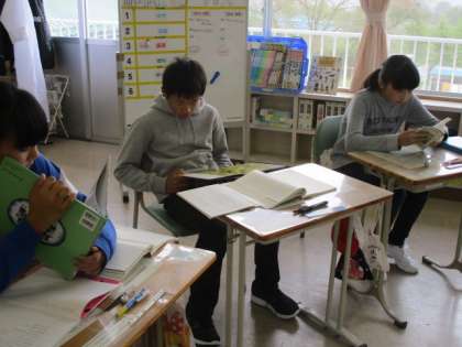 6年生の国語の授業のようすです。物語を読もうをテーマに学習していました。子どもたちは、宮沢賢治の作品を図書室で探し、気に入った作品を読んでいました。