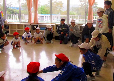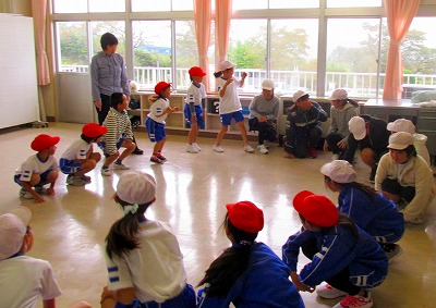 10月16日(月)の昼休みに、海老根っ子タイムを行いました。あいにくの雨でしたが、今回は室内でできる簡単な運動や柔軟体操に取り組みました。
