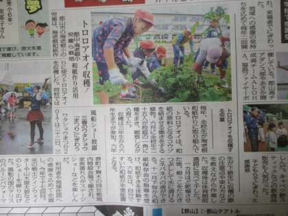 本日の福島民報新聞に、先日行ったトロロアオイ収穫の様子が、掲載されました。