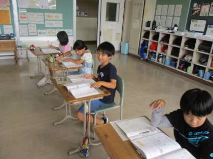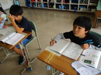 4年生の算数の授業のようすです。わり算の筆算をテーマに学習していました。子どもたちは、84÷21の計算の仕方を考え、発表していました。