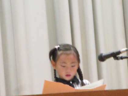 本日、午前9時より、御館小学校下枝分校体育館において、中田地区敬老会が開催され、中田地区の小学校3校と中学校2校の代表が、作文発表を行いました。本校の代表児童は、「大好きなじいちゃんとばあちゃん」という題で、発表しました。