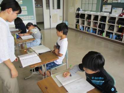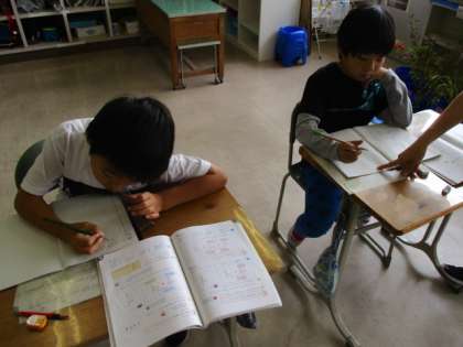 4年生の算数の授業のようすです。わり算をテーマに学習していました。子どもたちは、86÷23のように、仮の商を立てて計算する問題を解いていました。