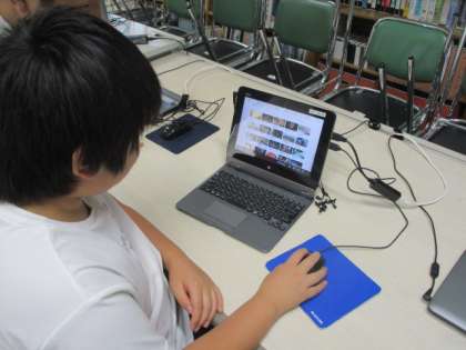 6年生の理科の授業のようすです。大地のつくりをテーマに学習していました。PCを使って、学習のふり返りをしていました。