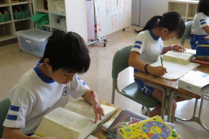 国語辞典を使って、慣用句調べを行った4年生。何気なく聞いていたけれど、意味や使い方を知らない慣用句もあり、言葉を見つけるたびに辞書に書かれた説明をじっくりと読む姿が数多く見られました。