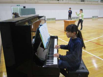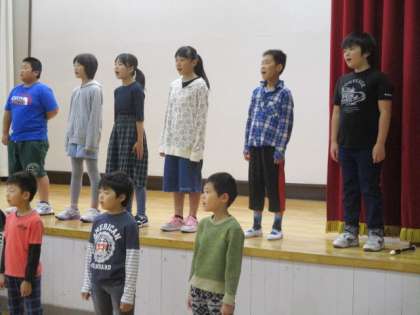 子どもたちは、伴奏に合わせて、歌詞を確かめながら歌っていました。