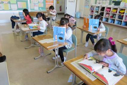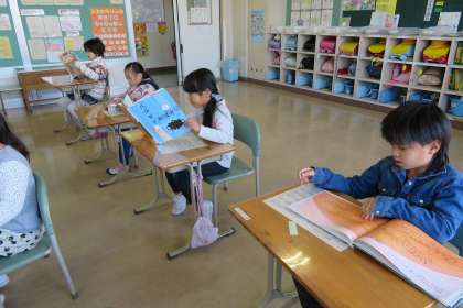 読書タイムのようすです(1・2年生)