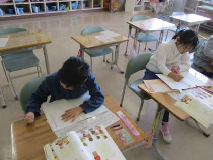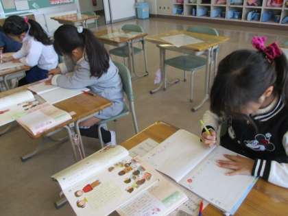 1年生の国語の授業のようすです。ともだちにきいてみようをテーマに学習していました。子どもたちは、自分が知りたいことを相手に聞くために、インタビューするときの注意点などについて、みんなで確かめていました。