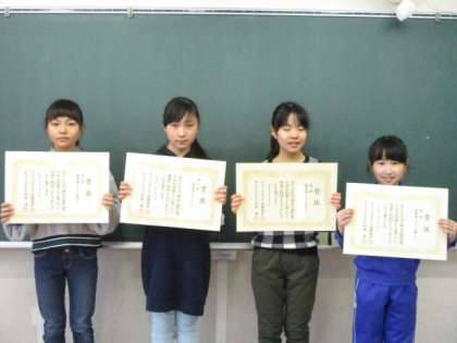 集会の最後に、第49回郡山市小・中学校書きぞめ展において、奨励賞と特選を受賞した皆さんに、賞状を渡しました。