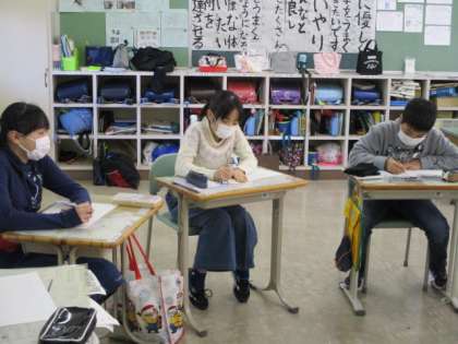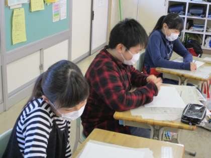 5・6年生の総合的な学習の時間のようすです。子どもたちは、これまでの生活を振り返りながら、手紙形式で作文を書いていました。