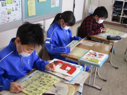 5・6年生の英語表現の授業のようすです。職業をテーマに学習していました。子どもたちは、ヒントをたよりに職業に関するクイズに英語で解答していました。