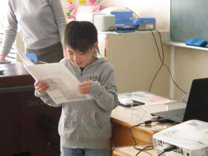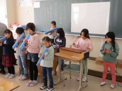 今日は、今年度最後の授業参観でした。1・2年生の子どもたちは、自分の成長についてまとめたことや合奏などを発表していました。