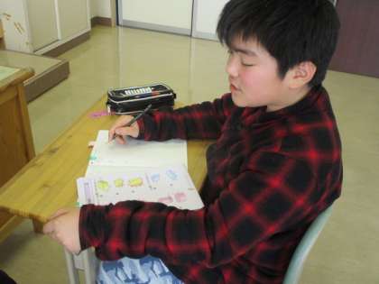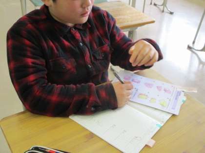 6年生の算数の授業のようすです。角柱や円柱の体積をテーマに学習していました。ドリルを使って、問題を解いていました。
