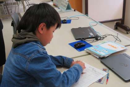 3年生の算数科の授業のようすです。まきじゃくの使い方を復習した後、自分たちで測りたいものを決めて、長さを測る活動を行いました。見当をつけながら、一つ一つの長さを確認していました。