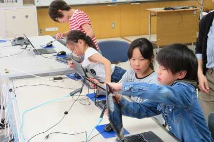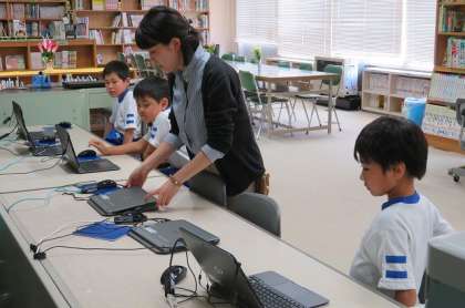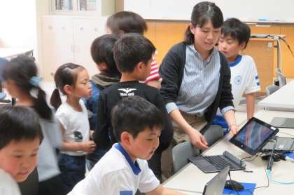 3・4年生の総合的な学習の時間のようすです。タブレットPCのカメラ機能を使った学習をしていました。理科の観察でも使えるように、タブレット部分を取り外して撮影する練習をしていました。