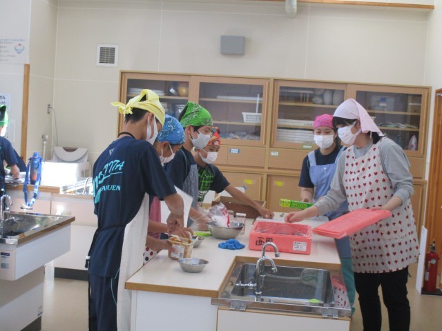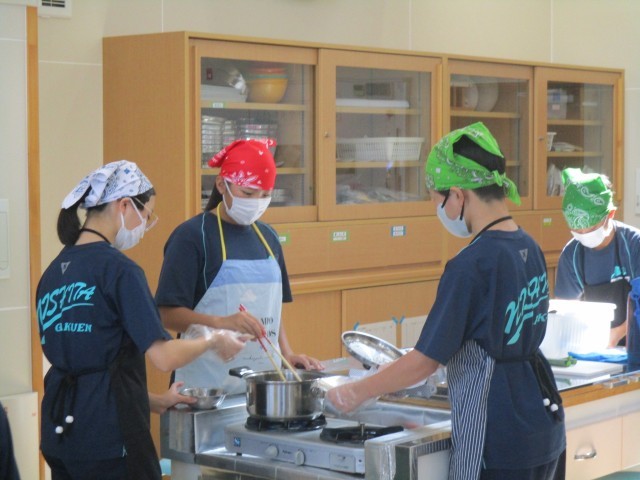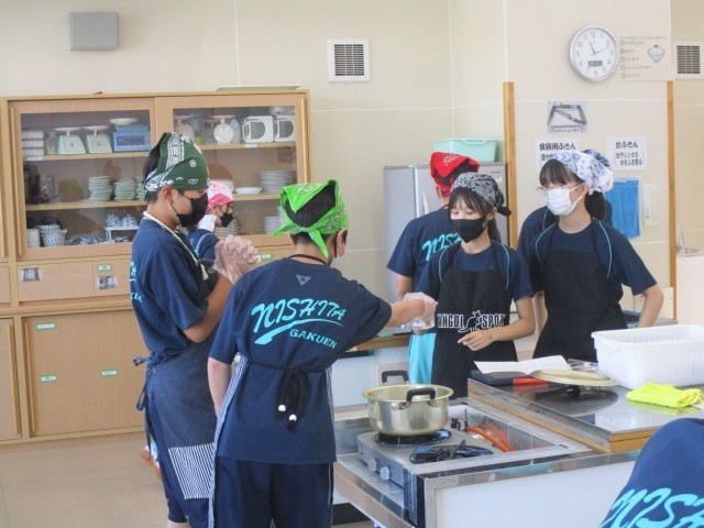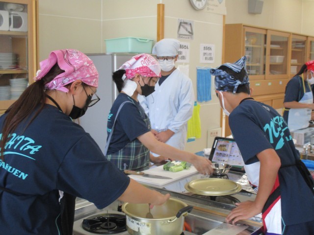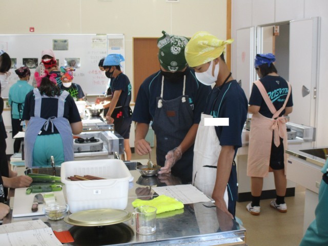 7年生の家庭科の授業では、「さばの味噌煮」の調理実習を行いました。お互いに声をかけ、協力しながら作業を進める様子が印象的でした。