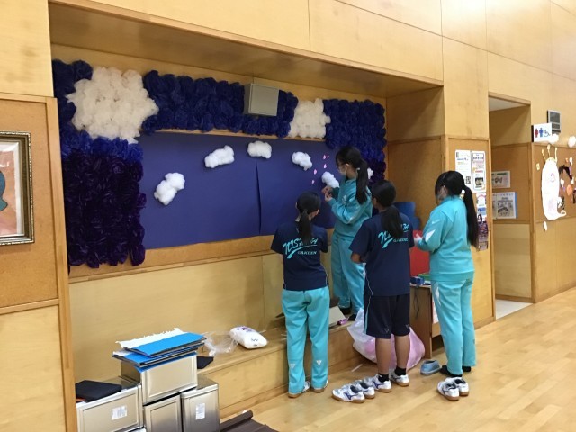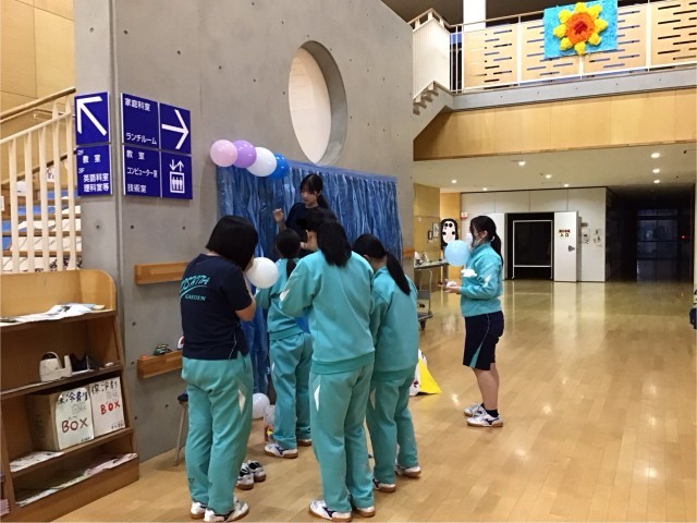18日に開催される西風祭に向けて全員が協力して準備を進めています。あちらこちらから笑い声が聞こえてきます。生徒はとても楽しそうです。