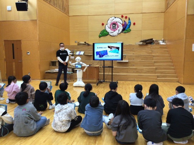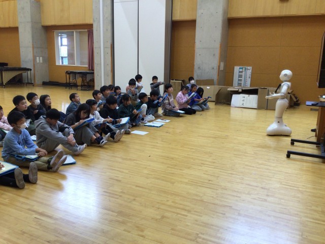 次は、4年生がペッパーくんとごみと私たちの生活について考えています。