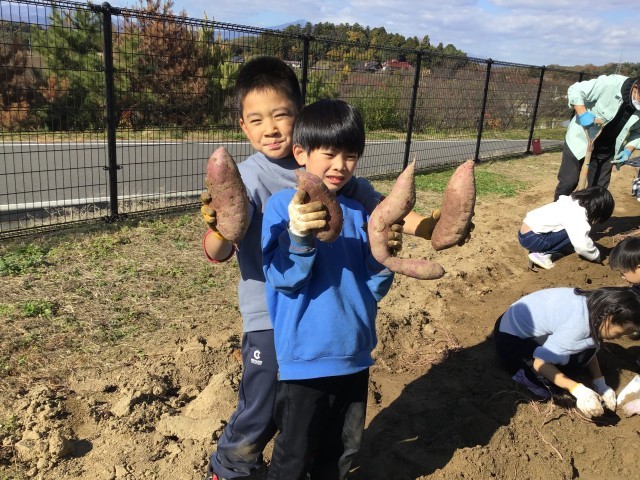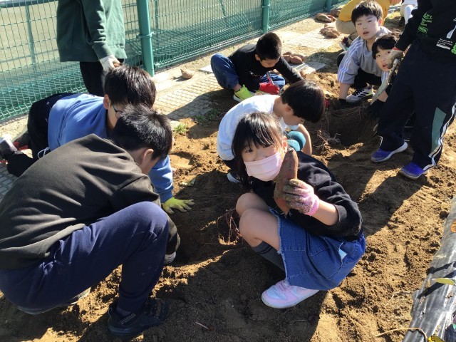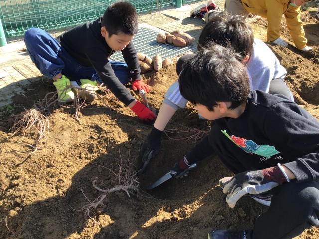 2年生が学校の畑に植えたさつまいもを収穫しました。