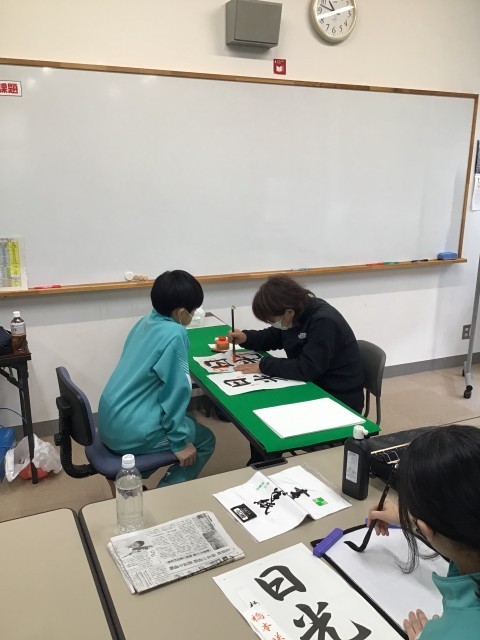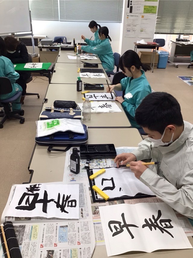 本日、1、2校時目に8年生、3、4校時目に7年生の書写指導を行いました。