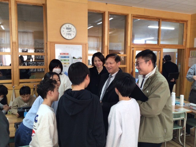 1月30日、郡山市と台湾の台北市との連携基本合意書の締結に合わせ、来日した、台北市教育局の方々が、郡山市の公立学校の中から、学校の施設や子どもたちの学びの現状について、西田学園に視察にいらっしゃいました。