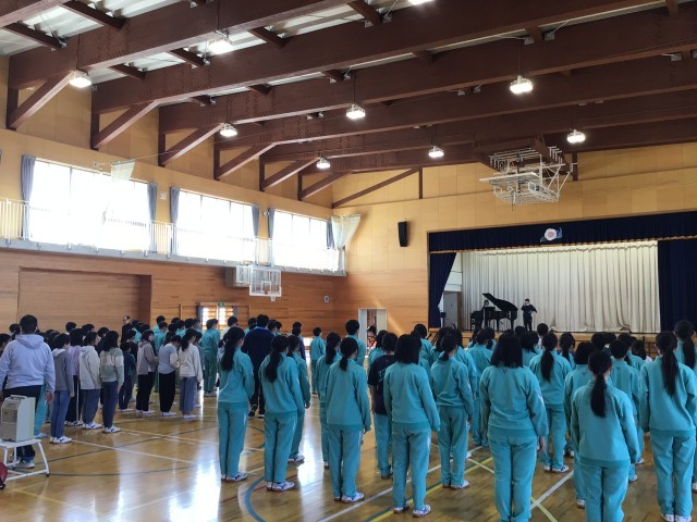 卒業式に向けて、在校生はそんな9年生にエールを送るような歌声を体育館いっぱいに響かせています。