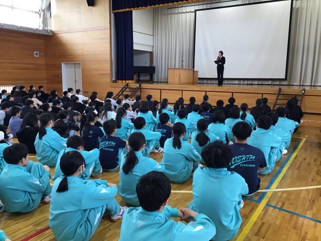 5年生から9年生の児童生徒が体育館に集まり、前期認証式が行われました。