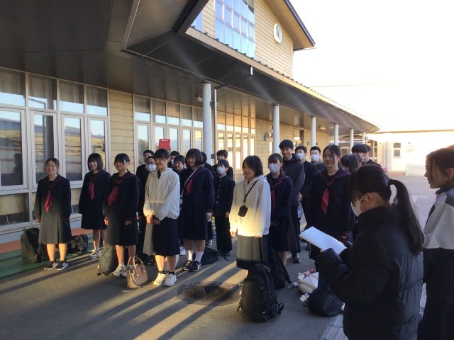 修学旅行スタートです。笑顔、笑顔の出発式でした。朝早くからのお見送り、ありがとうございました。楽しんできます!