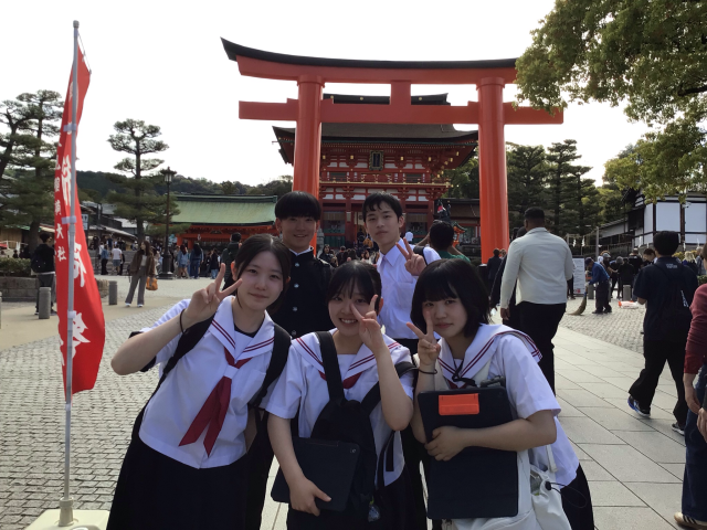 暑すぎず、寒すぎず、爽やかな天候です。目的地に無事到着してホッとする生徒たちです。