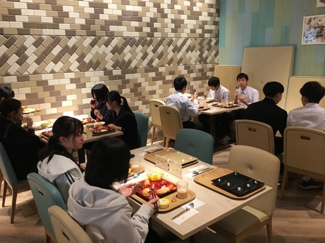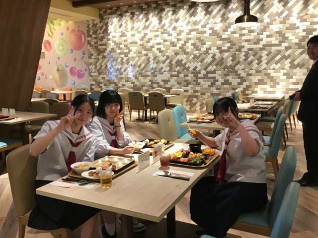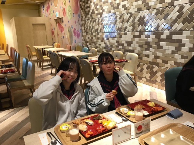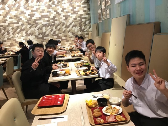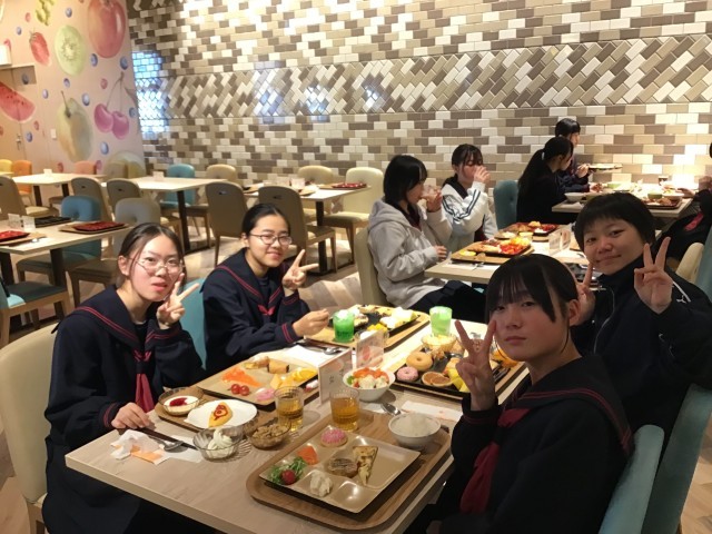 修学旅行3日目。天候晴れ☀️今日も全員元気です。朝食ビュッフェはとても豪華で、何から食べようか迷いました。フレンチトーストやピッツァ、ドーナッツ、ケーキ、フルーツが人気でした。朝からお腹いっぱいです。