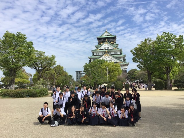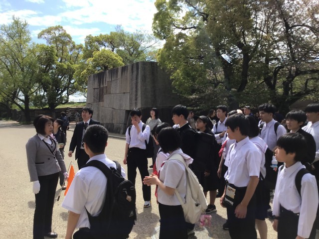 まず、大阪城天守閣を見学しました。外国の方と会話をする生徒もいました。