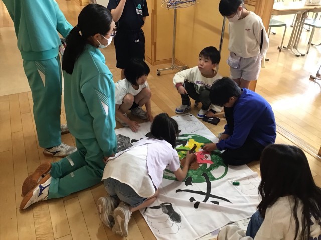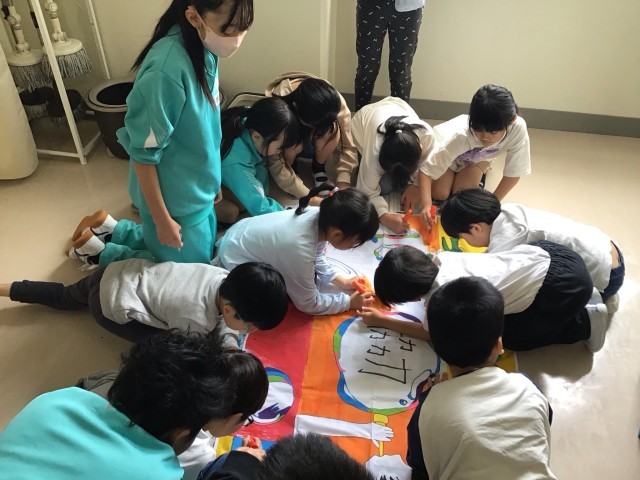 西風ファミリーでスポーツフェスタの打ち合わせ会を行いました。スポーツフェスタは6年生が中心になって進めています。自分たちで作成した動画を見せながら、みんなで種目の内容やルールについて確認しました。その後、どの順番で走るのかを決めたり、旗の色塗り、ダンスの練習などを行いました。活動を通してチームの結束力がどんどん強まっていきます。
