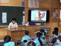 7月17日(火)今日は、ブラッドリー先生との英語表現の授業がありました。1年生は、Fruits(果物)を英語で習いました。ゲームをしながら、みんな楽しそうに活動していましたよ。