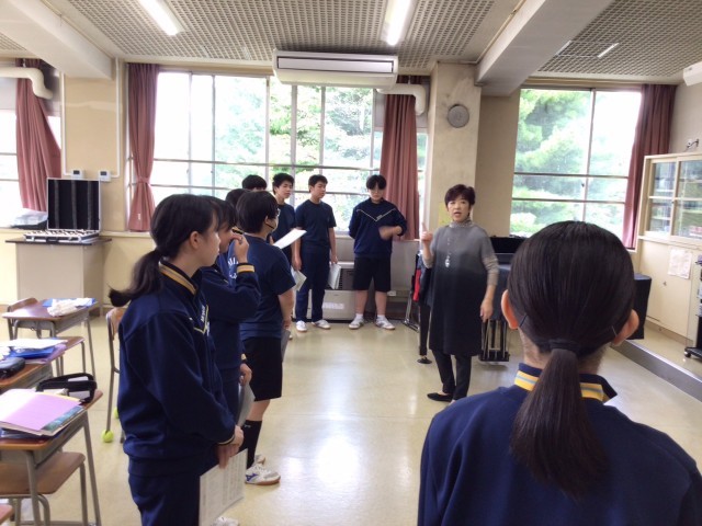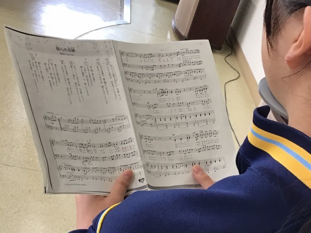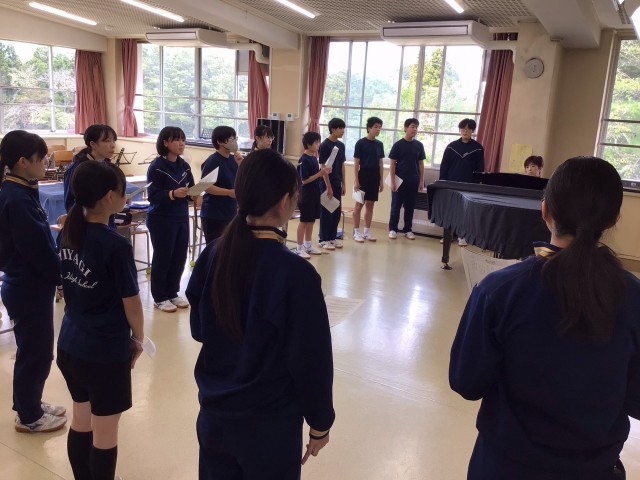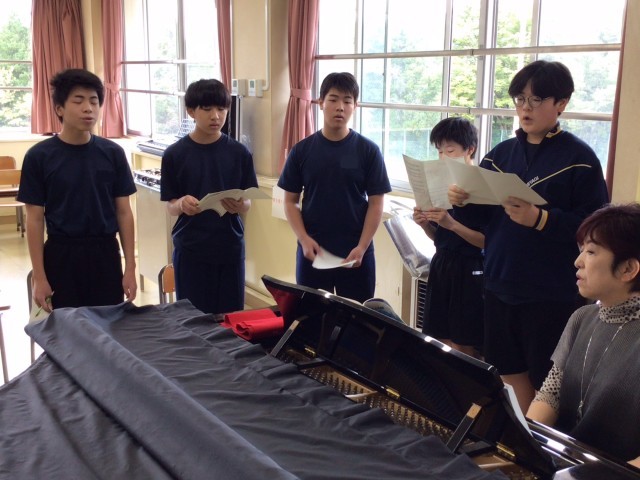 今日は3学年合同の音楽の授業がありました。間近に迫った校内文化祭〈秋桜祭〉や市の音楽学習発表会に向けて〈僕らの奇跡〉をたっぷりと歌いました。曲想をつかんで、自分たちの合唱にいかしていけるよう細かく区切りながら何度も繰り返し歌いました。
