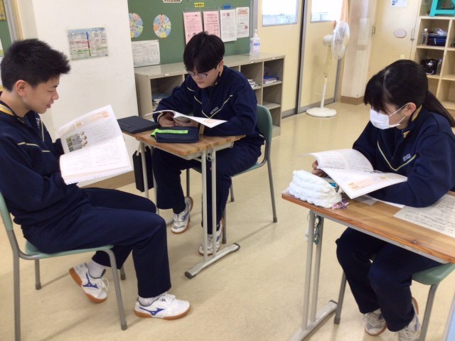 この3人の会話を、グループでロールプレイ(役割演技)を行いました。生徒からは「本人になりきって演じた」「共感しながら読むことができた」という感想が聞かれました。